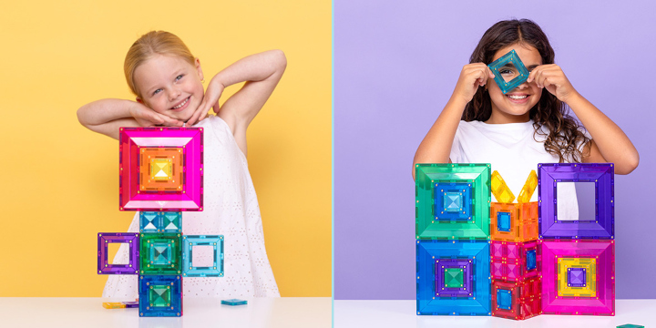 Standardowe i duże płytki zostały zaprojektowane z otwartą ramą oraz wieloma miejscami magnetycznego łączenia. Taka konstrukcja ułatwia budowanie w górę i wszerz, tworzenie portali, łuków, kopuł czy bardziej skomplikowanych brył. Otwarta forma sprawia, że konstrukcje są lekkie wizualnie, a jednocześnie stabilne i efektowne.