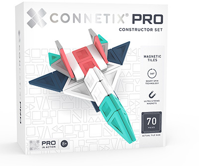 Connetix 70 Piece PRO Constructor Set - buduj jak profesjonalista Wejdź na wyższy poziom konstruowania z zestawem płytek magnetycznych Connetix PRO stworzonym z myślą o starszych dzieciach, nastolatkach i dorosłych fanach kreatywnego budowania. Zaawansowana technologia CONNETIX Smart-Spin z obrotowymi magnesami 360° pozwala tworzyć stabilne, dopracowane konstrukcje pod zupełnie nowymi kątami - od pojazdów i robotów, przez wnętrza i meble, aż po fantazyjne postacie, zwierzęta i abstrakcyjne formy.