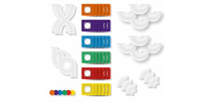 W zestawie znajdziesz m.in. specjalną rurkę w kształcie litery X oraz pętlę, które pozwalają zmieniać kierunek biegu kulek i tworzyć dynamiczne zjazdy. Kwadratowe płytki magnetyczne, przezroczyste, karbowane rurki oraz drewniane kulki zachęcają do eksperymentowania z ruchem, prędkością i grawitacją. To dodatek, który rozbudza inżynierską ciekawość, uczy planowania i zachęca do ciągłego udoskonalania swoich projektów.