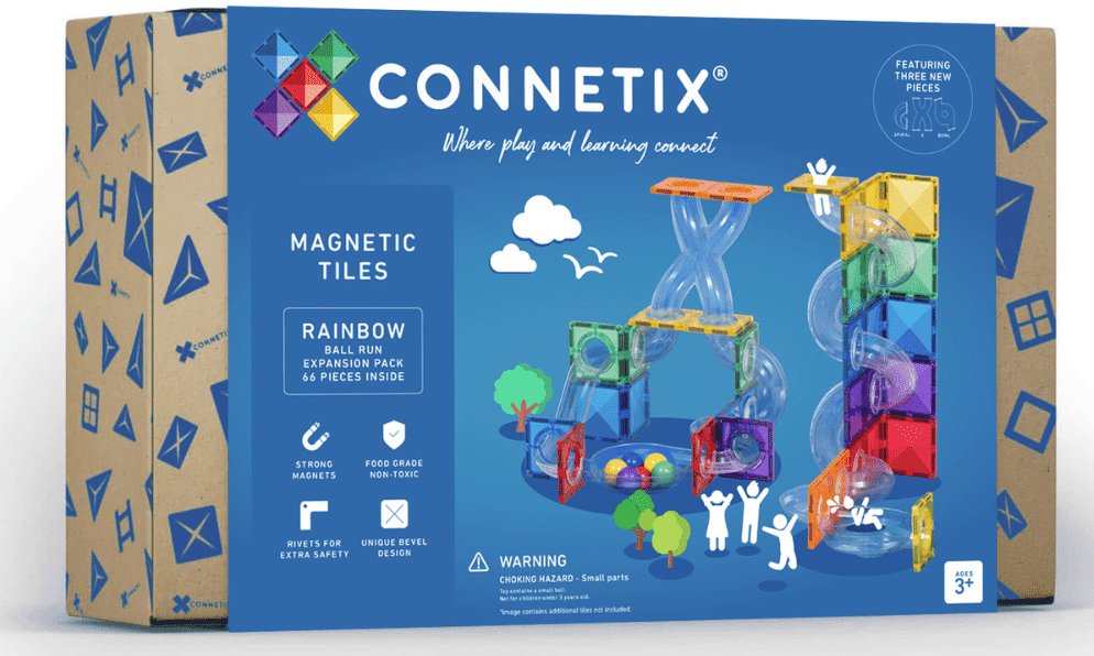 Rainbow Ball Run Expansion Pack ma otwartą formułę - nie narzuca jednego „właściwego” sposobu zabawy. Można go łączyć z zestawem Rainbow Ball Run oraz innymi kompletami płytek Connetix, aby budować coraz większe, bardziej spektakularne tory kulkowe.