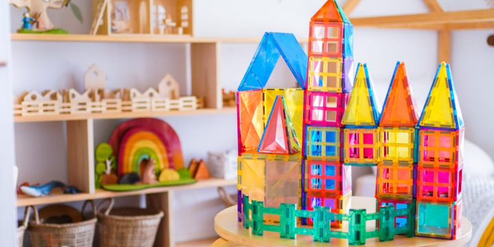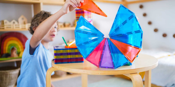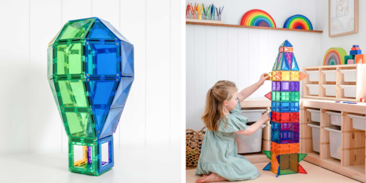 Z tych samych elementów można układać płaskie kompozycje 2D, a następnie wykorzystywać je jako ściany lub podstawy do konstrukcji 3D. Dziecko odkrywa, jak przekształcić prosty układ kształtów w wieżę, most, rakietę czy zamek. To świetny trening wyobraźni przestrzennej - uczy, jak „pomyśleć o konstrukcji w górę”, a nie tylko na płasko.