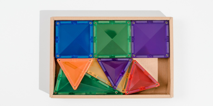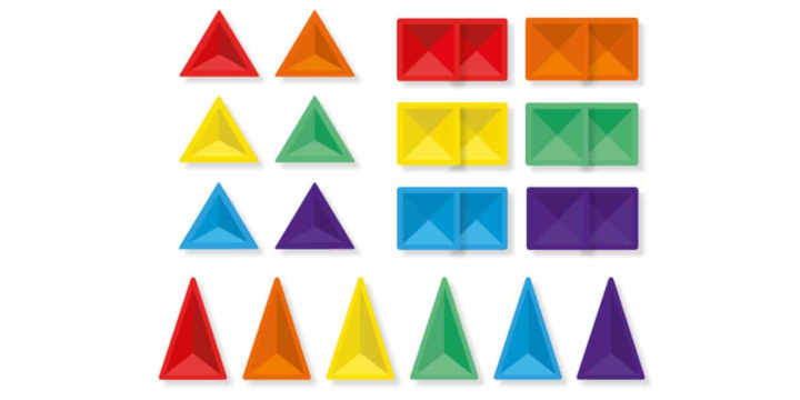 W środku znajdziesz różnorodne kształty we wszystkich kolorach tęczy, które można łączyć zarówno w płaskie wzory 2D, jak i efektowne budowle 3D. Rakiety, lody, domki, kwiaty, dinozaury, zwierzęta, miasta, łodzie czy mandale - ograniczeniem jest tylko wyobraźnia. Skośna konstrukcja płytek oraz mocniejsze magnesy sprawiają, że budowle są stabilne, a załamania światła na powierzchni klocków robią ogromne wrażenie.