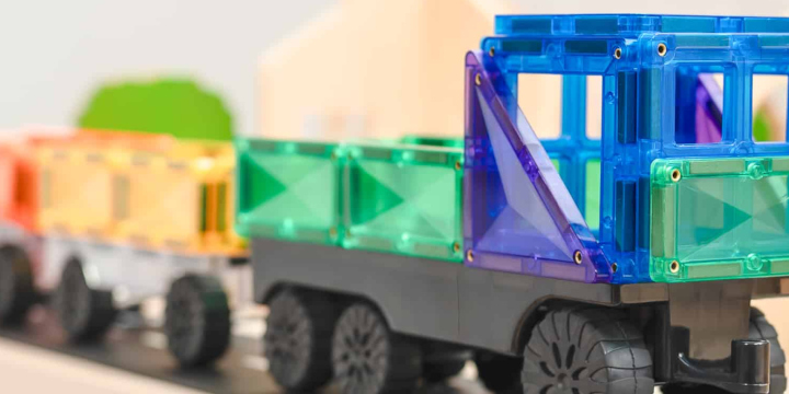 Charakterystyczne fazowanie sprawia, że płytki Connetix są wyjątkowo wytrzymałe, a ich powierzchnia pięknie załamuje światło. Budowane pojazdy przyciągają wzrok kolorami i refleksami, co dodatkowo zachęca do zabawy. Dziecko chętnie obserwuje, jak zmienia się wygląd konstrukcji przy różnym oświetleniu - np. przy oknie, lampce czy świetle dziennym.