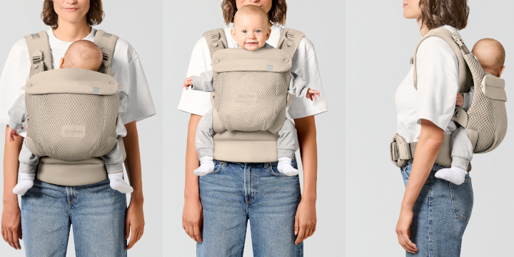Cybex Amya oferuje pełną elastyczność, pozwalając na noszenie dziecka w czterech różnych konfiguracjach dopasowanych do wieku i potrzeb poznawczych malucha. Niezależnie od tego, czy Twoje dziecko potrzebuje wyciszenia przy piersi, czy chce obserwować świat z Twoich pleców, nosidło zapewnia stabilne podparcie i bezpieczeństwo w każdej z tych ról.
