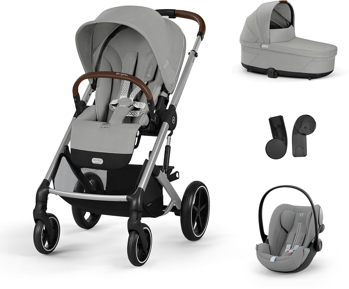 Cybex Balios S Lux 2.0 SET S - wózek wielofunkcyjny, zestaw 4w1 z fotelikiem Cloud G i-Size i adapterami | SLV Stone Grey