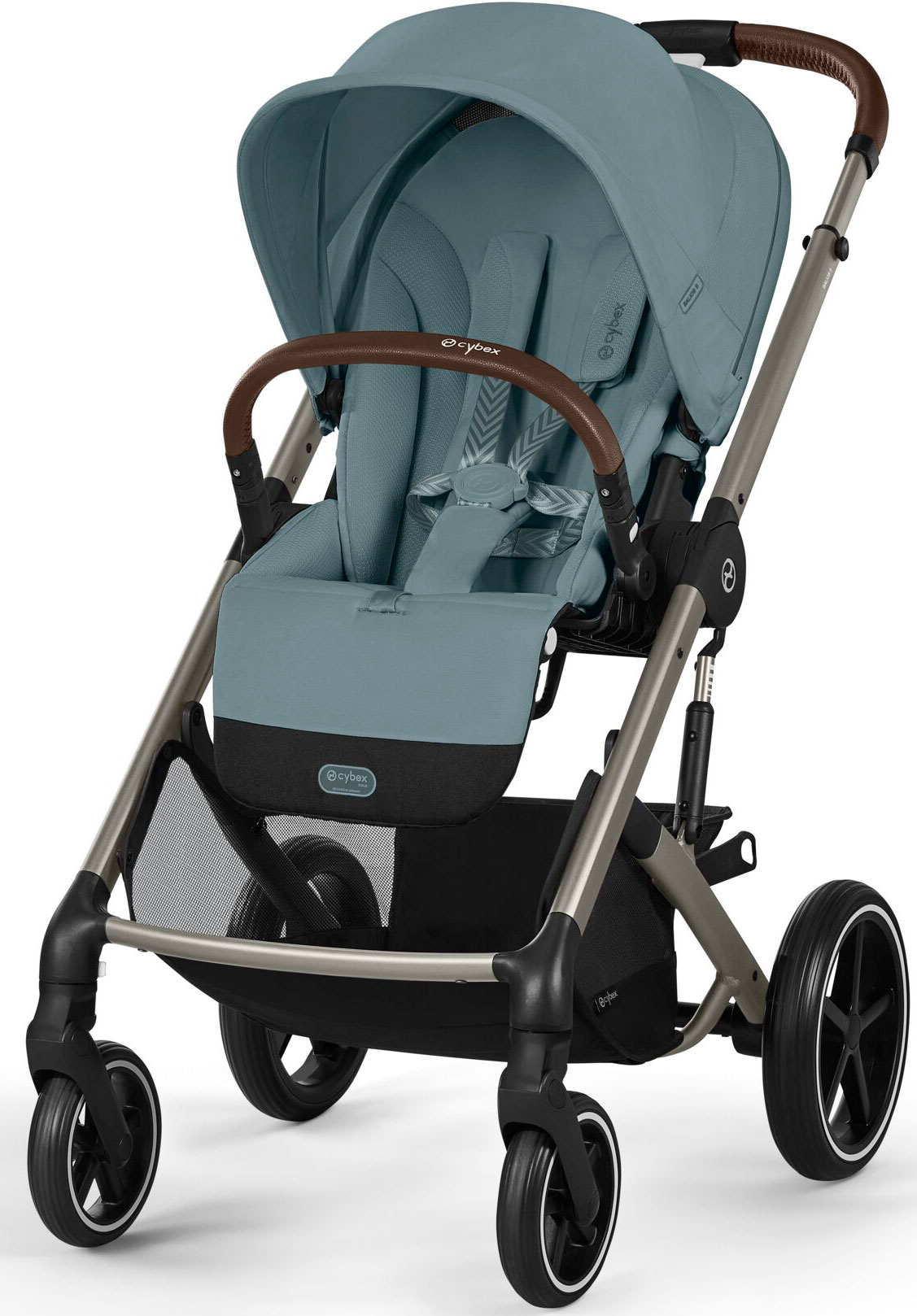 Duże, bezobsługowe koła świetnie radzą sobie w każdym terenie. Wózek ze względu na design doskonale prezentuje się w miejskim szyku, jednak koła i amortyzacja pozwalają wykorzystać wózek w trudniejszych warunkach.