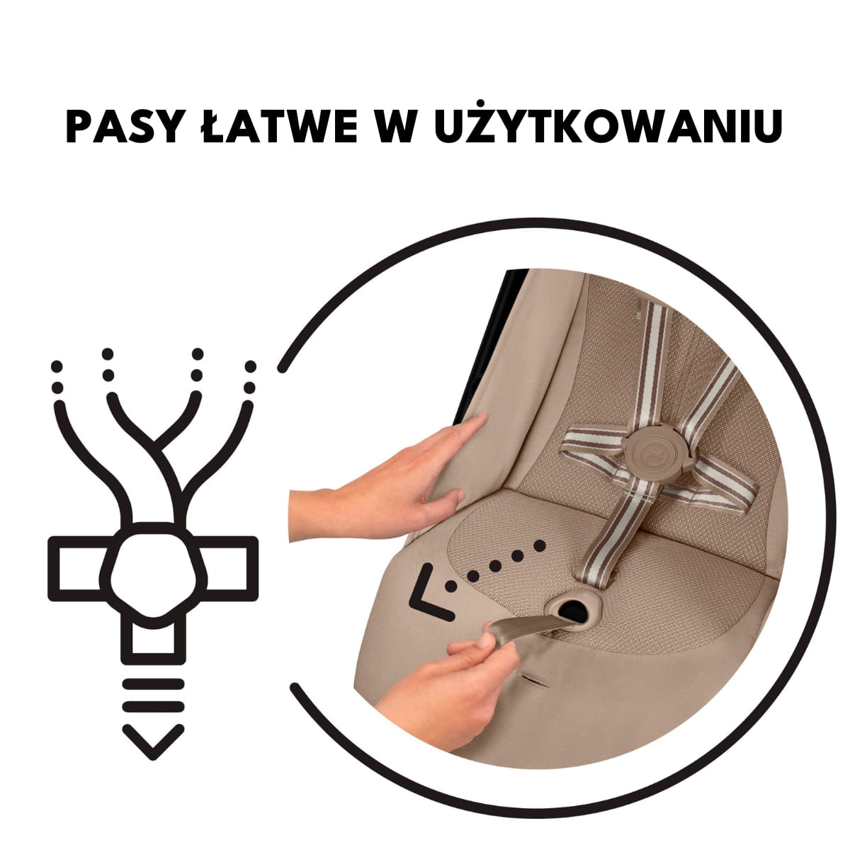 - nowe szelki, zaciągane tak samo jak pasy fotelika;