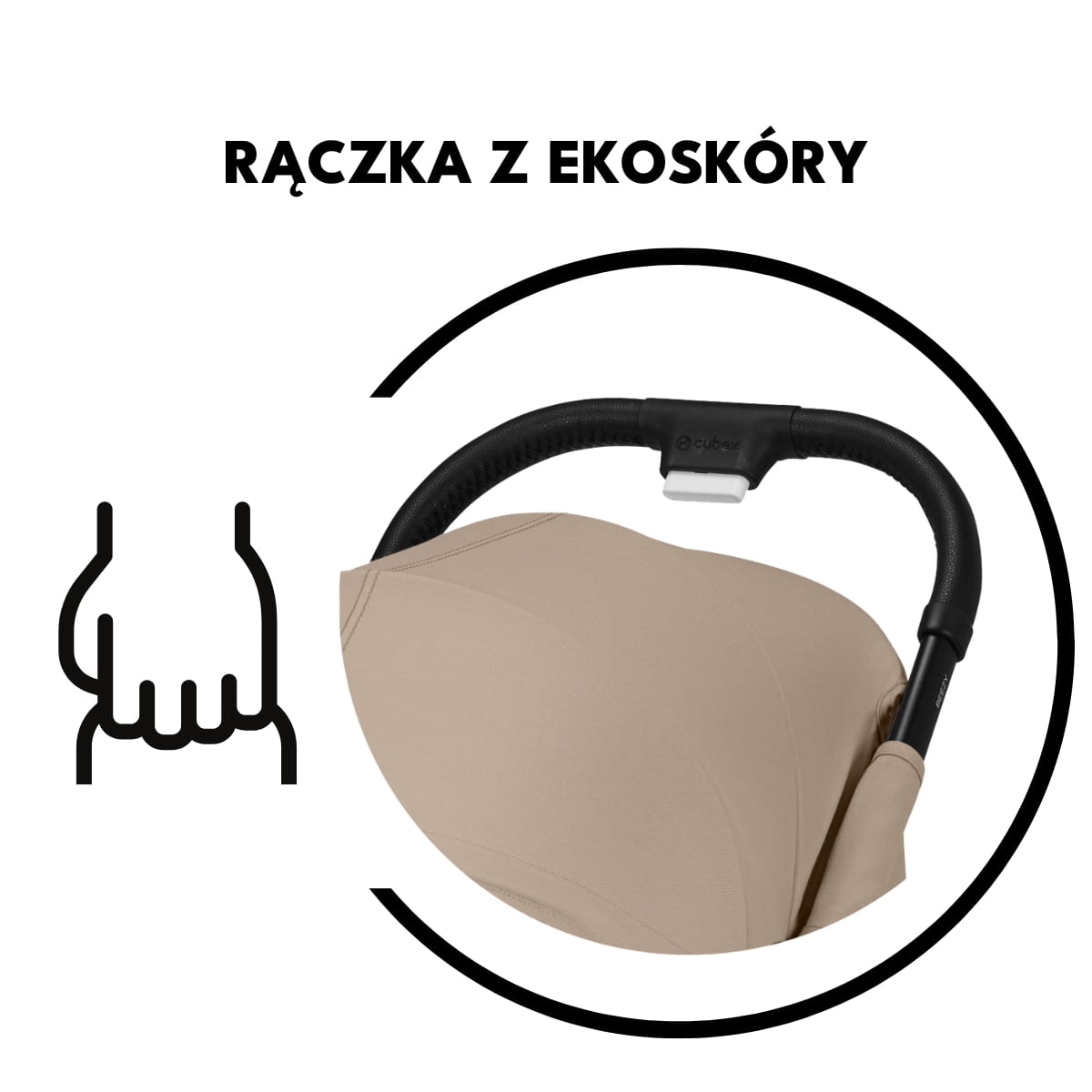 Wózek spacerowy z pełną rączką jest dla wielu rodziców o wiele wygodniejszy w prowadzeniu. Beezy 2.0 posiada rączkę z ekoskóry, która umożliwia rodzicowi pewny chwyt. To bardzo ważne, aby wózek nie wyślizgnął się z rąk podczas jazdy. Biały przycisk widoczny u spodu rączki służy złożeniu wózka.