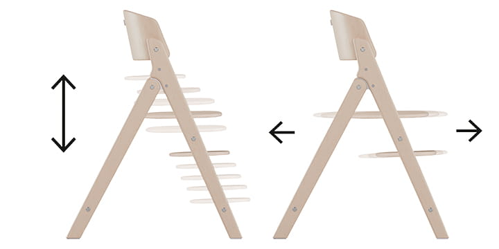CLICK & FOLD został zaprojektowany tak, aby wspierać prawidłową postawę. Kiedy deski znajdują się na górnych szczeblach, delikatne nachylenie sprzyja ergonomicznej, naturalnej pozycji siedzenia. Mebel wspiera kręgosłup od samego początku, przez wszystkie etapy wzrostu, zapewniając zdrowe i wygodne siedzenie na każdym etapie życia.