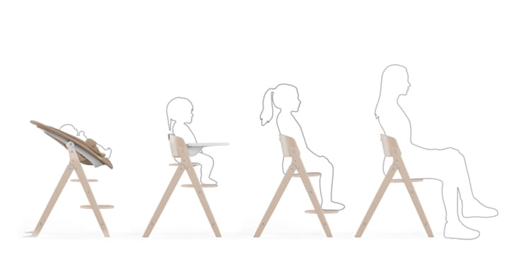 CLICK & FOLD to krzesło zaprojektowane z myślą o całej rodzinie. Można je dostosować do każdego wieku i rozmiaru dzięki wielu dostępnym konfiguracjom. Dla noworodków Bouncer łatwo montuje się na ramie krzesła, a gdy dziecko zacznie siedzieć samodzielnie, może korzystać z zestawu Baby Set (opcja dostępna w zestawie 3w1 i 4w1). Kiedy nadejdzie czas, deski można regulować, aby zapewnić więcej miejsca na nogi rosnącemu dziecku, a podnóżek zdjąć, aby dostosować krzesło do starszego użytkownika.