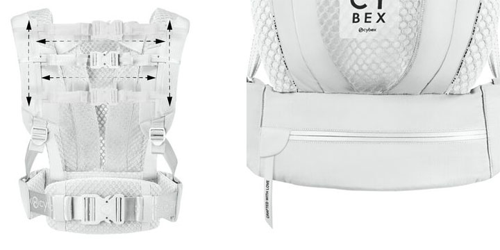 Regulowany pasek mostkowy zwiększa stabilność ramion, przez co jest wygodniej i bezpieczniej. Dodatkowo w pasie biodrowym znajduje się specjalna kieszonka zamykana na suwak, do której rodzic może schować najpotrzebniejsze akcesoria.