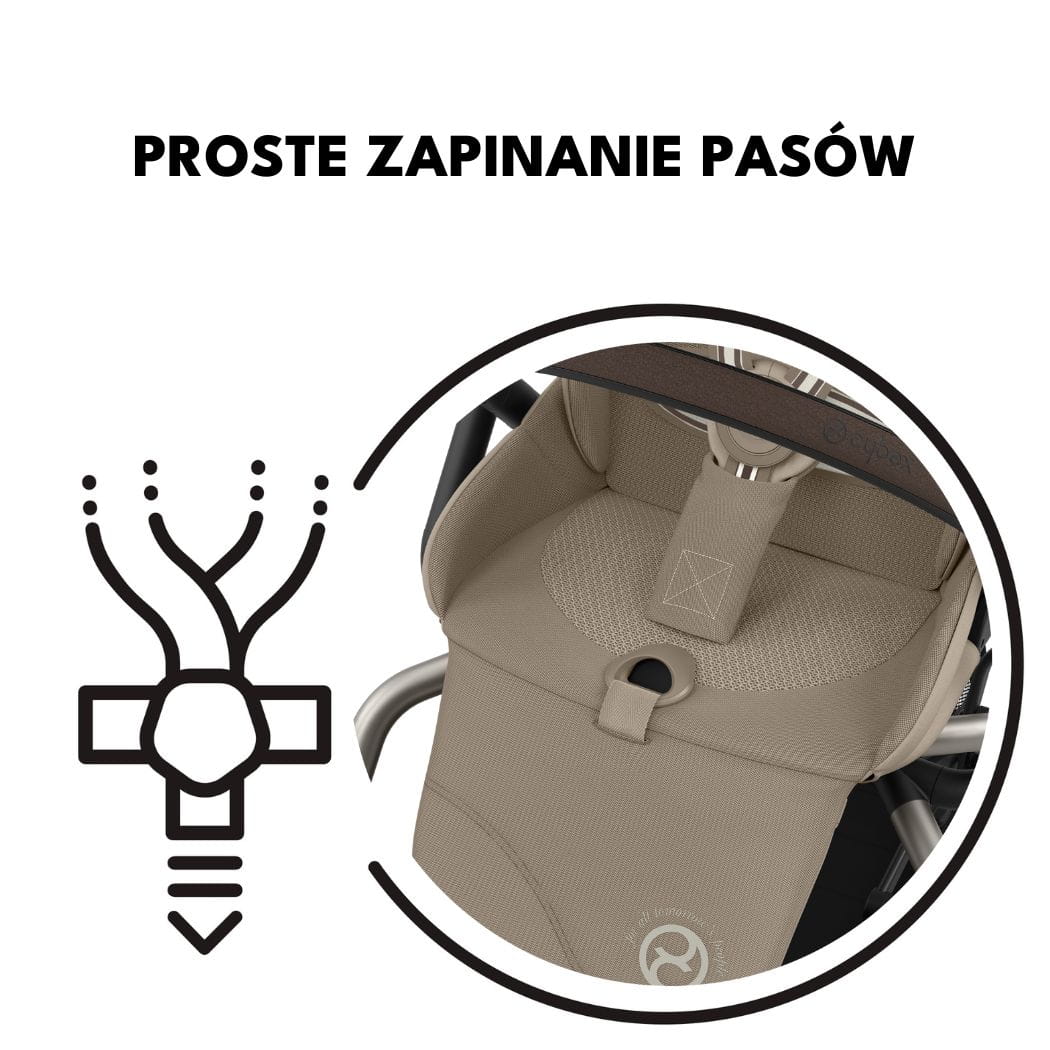 Eezy S Twist + 2 posiada system łatwego zaciągania pasów, tak jak w większości fotelików samochodowych. System zapięcia pasów One Pull zapewnia komfortowe i szybkie wkładanie i wyjmowanie dziecka ze spacerówki.