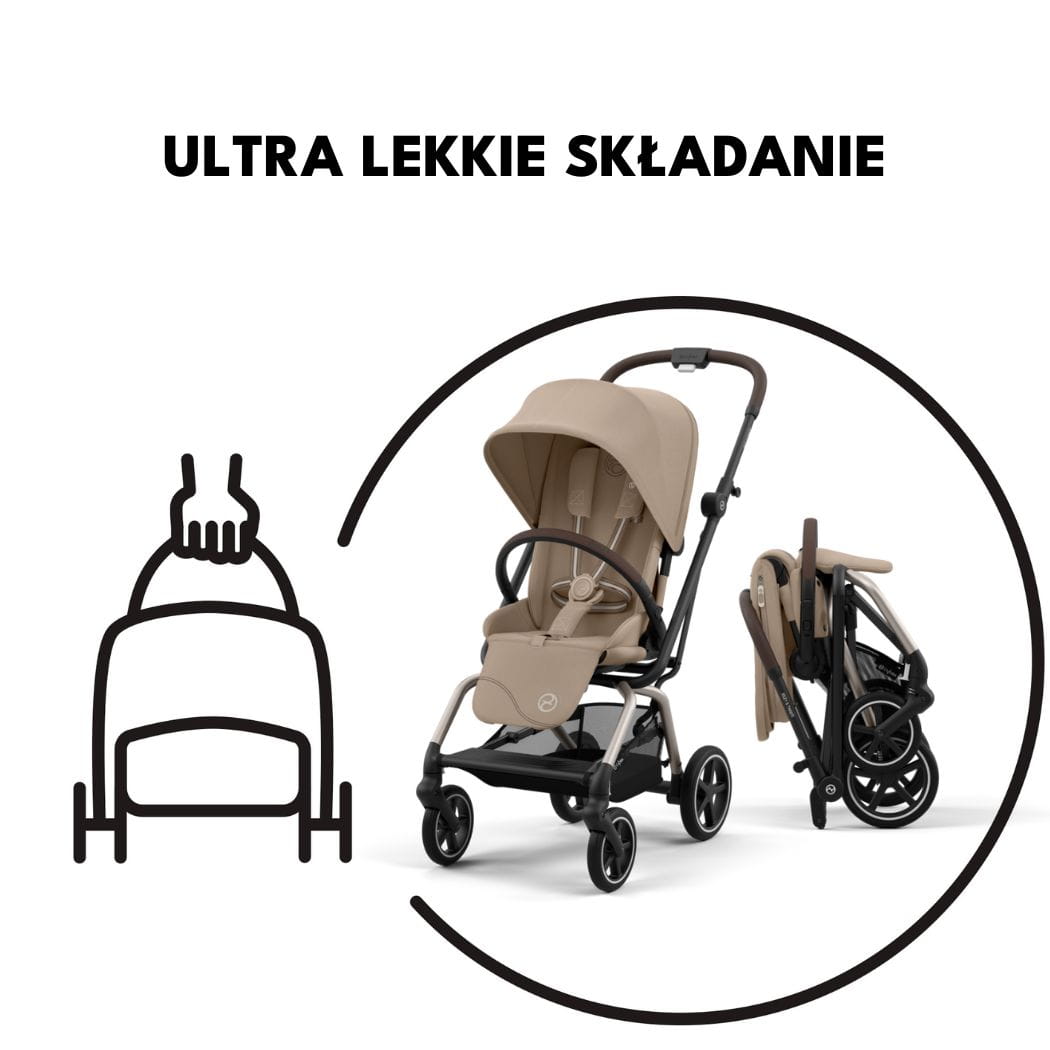 Wózek ma być komfortowy dla dziecka, a dla rodzica - prosty w obsłudze. Taki właśnie jest Cybex Eezy S Twist+ 2, który został wyposażony w bardzo intuicyjny system składania. Kompaktowe rozmiary wózka dodatkowo potwierdzają jego przeznaczenie do długich podróży.