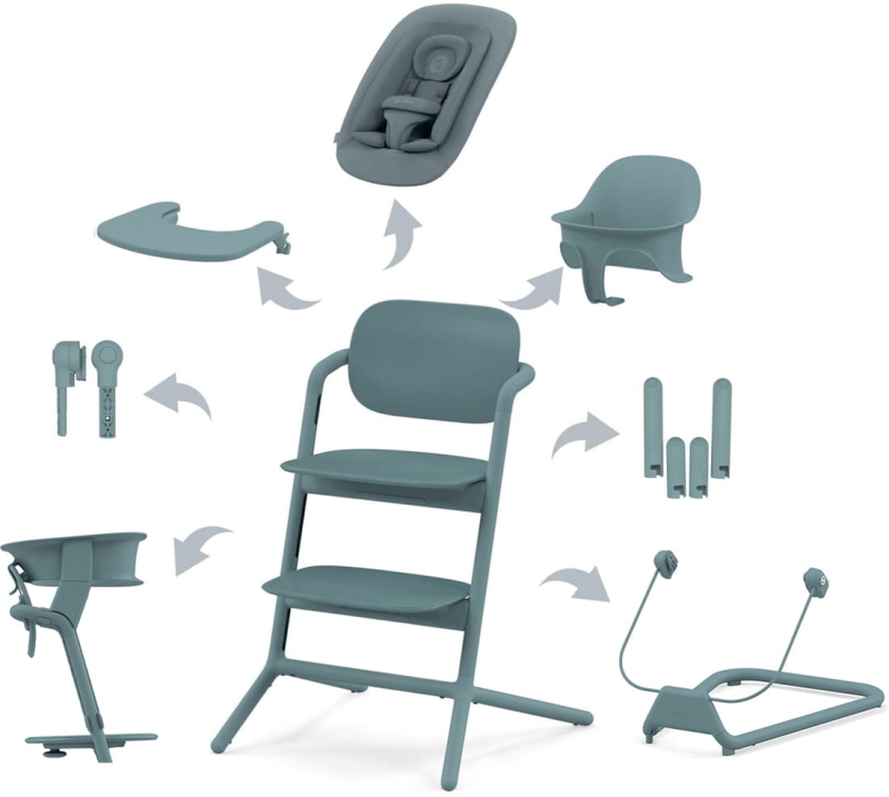 Cybex Lemo 2 - krzesełko do karmienia, zestaw 6w1 w zestawie Stand Bouncer i Learning Tower | Stone Blue