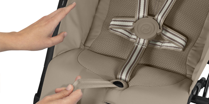 Cybex wprowadził do swoich wózków zaktualizowany system napinania pasów. Proces ten wygląda tak samo, jak w fotelikach samochodowych - pociągając za jeden pasek, zaciągają się pozostałe. Dzięki temu jednym ruchem zabezpieczymy pasażera.