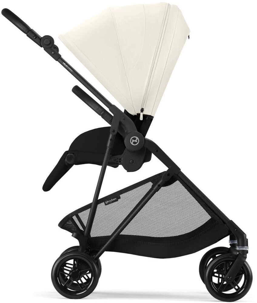 Melio Carbon rośnie wraz z Twoim maluchem – wózek jest kompatybilny z gondolą Melio Cot, fotelikiem samochodowym CYBEX oraz klasycznym siedziskiem, dzięki czemu płynnie dopasowuje się do Waszego stylu życia.
