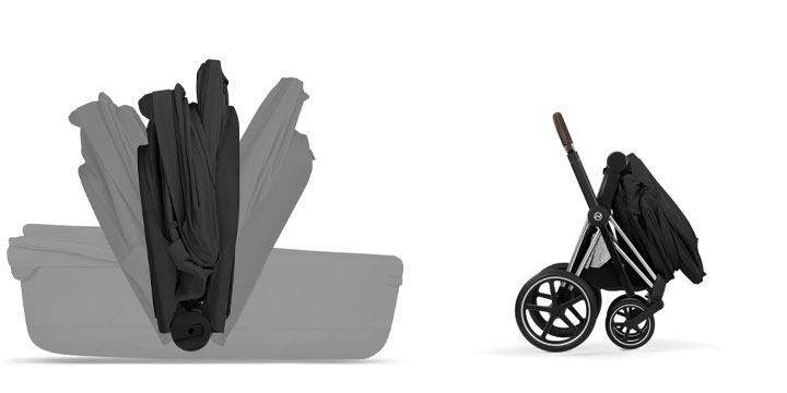To absolutny przełom w kategorii wózków premium - gondola Lux Priam składa się na pół, nawet gdy pozostaje zamocowana na ramie wózka. Pozwala to na błyskawiczne zmniejszenie gabarytów zestawu w bagażniku samochodu czy w domowym przedpokoju bez konieczności wypinania elementów. Co więcej, po zdjęciu ze stelaża, gondola składa się do rozmiarów akceptowanych przez większość linii lotniczych jako bagaż podręczny, co czyni ją pierwszą tak luksusową propozycją typu „airplane-friendly”.