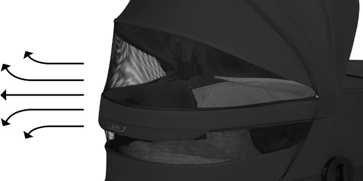 Gondola wyposażona jest w dwa oddzielne wizjery z siateczki - panoramiczny widok na dole oraz okienko w budce, które wspólnie dbają o zdrowy przepływ powietrza w upalne dni. Takie rozwiązanie nie tylko zapobiega przegrzaniu, ale pozwala Twojemu dziecku swobodnie obserwować świat w pozycji leżącej, co stymuluje jego rozwój i ciekawość. Gdy nadejdzie czas drzemki, magnetyczne domknięcia pozwalają szybko stworzyć przytulny, zacieniony kokon.