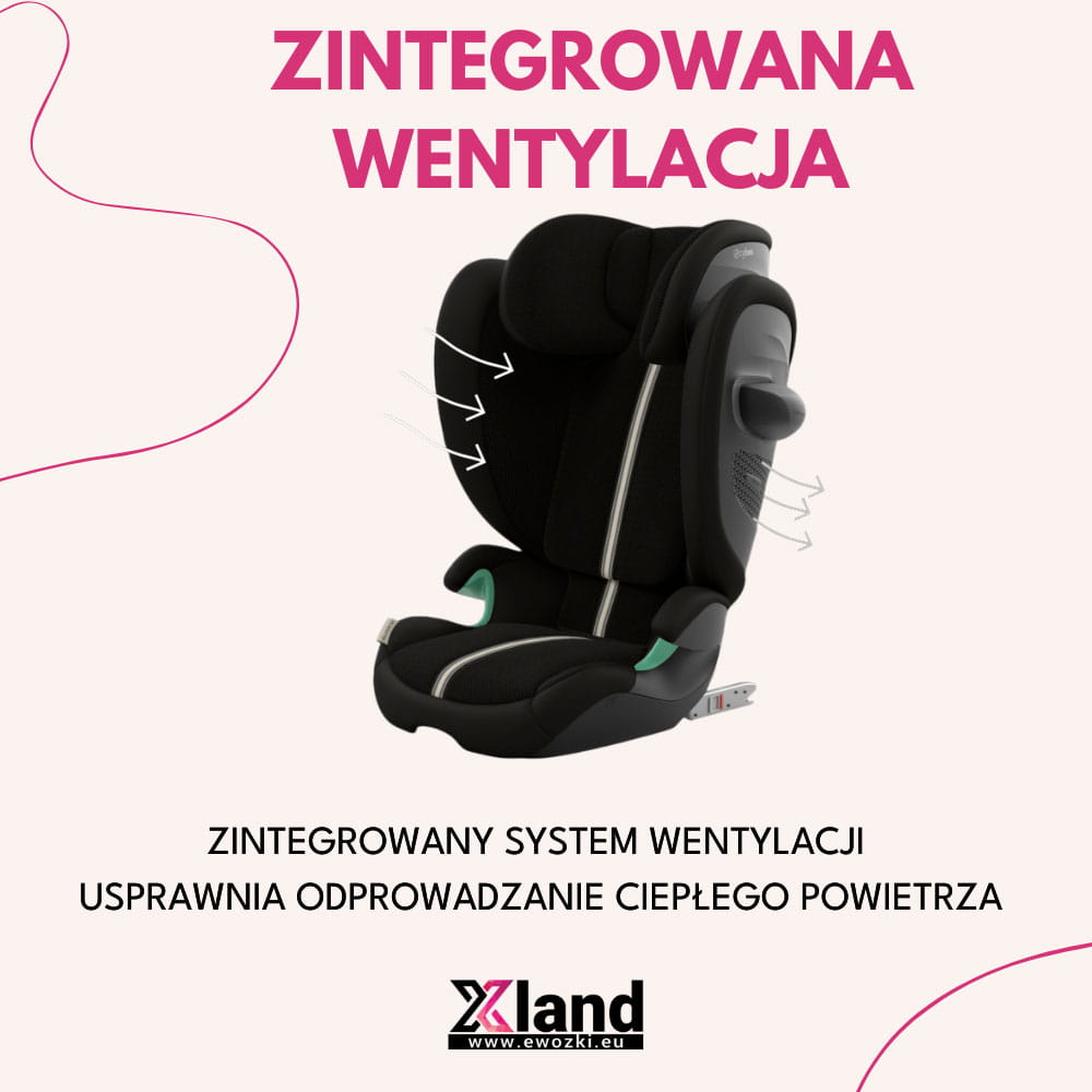 Otwory wentylacyjne współpracują z oddychającą skorupą fotelika, dlatego Cybex Solution G2 dobrze odprowadza ciepłe powietrze z siedziska, tym samym zapewniając maluchowi ulgę w cieplejsze dni.