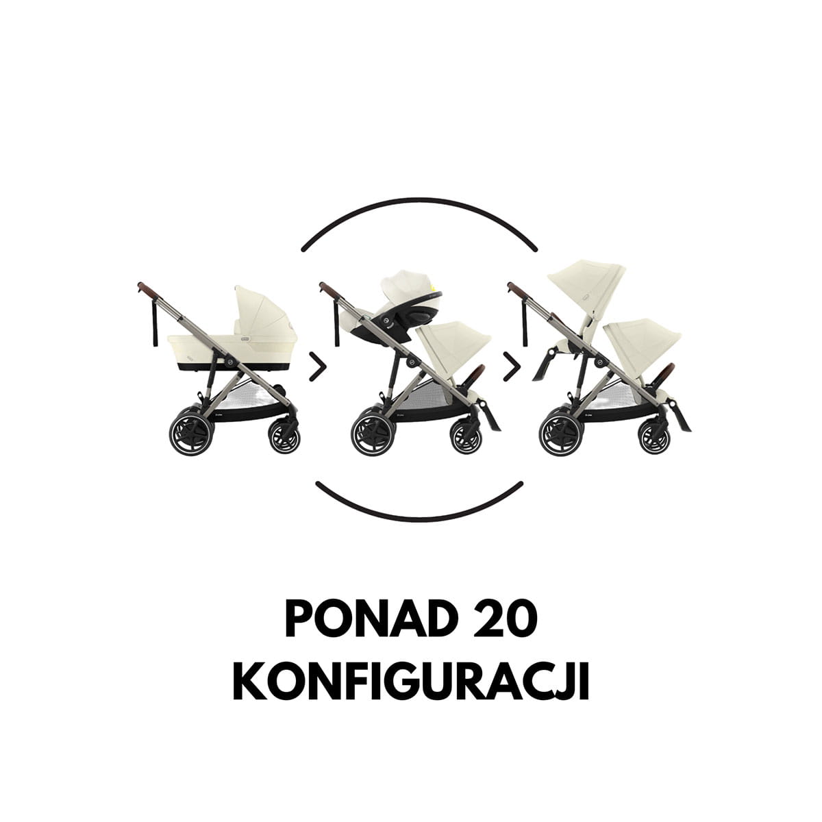 Dzięki możliwości wyboru jednej z ponad 20 dostępnych konfiguracji, Cybex e-Gazelle S dynamicznie dostosowuje się do potrzeb Twojej rodziny. Ta elastyczność sprawia, że ten jeden wózek da Ci wszystko, czego możesz potrzebować nie tylko teraz, ale również w przyszłości.