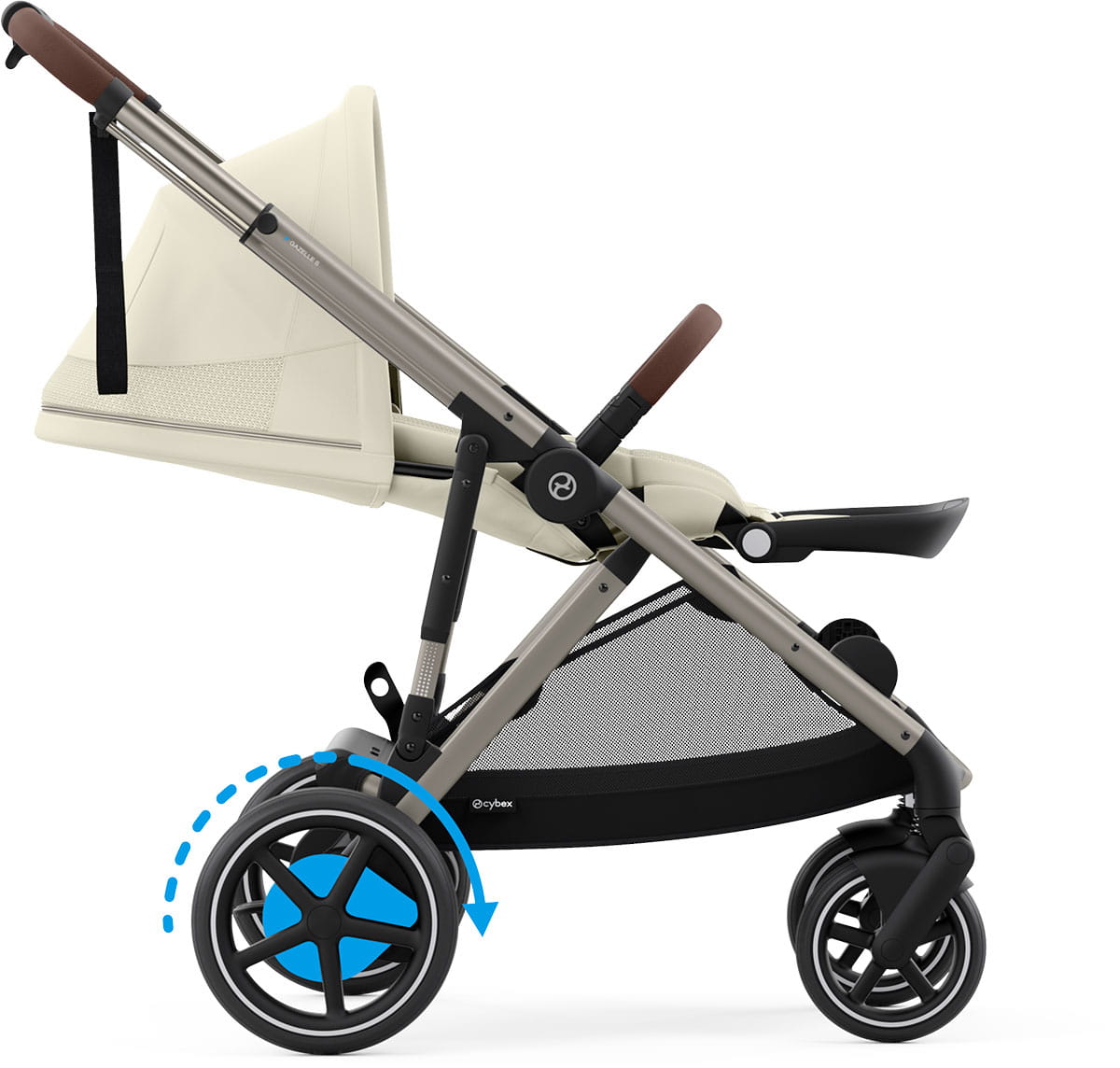 Cybex e-Gazelle S posiada wszystkie zalety swojego starszego brata, jednak wyróżnia go supermoc - napęd elektryczny. Dzięki temu wózek wspiera rodzica podczas jazdy pod górkę, z górki, oraz podczas spacerów po trudnym czy nierównym terenie. Napęd elektryczny można regulować za pomocą intuicyjnej dźwigni. Cybex e-Gazelle S sprawia, że pokonywanie stromych podjazdów, nierówności czy długich tras staje się znacznie łatwiejsze. To idealne rozwiązanie dla rodziców, którzy często spacerują po zróżnicowanym terenie lub dla tych, którzy cenią sobie komfort i wygodę.
