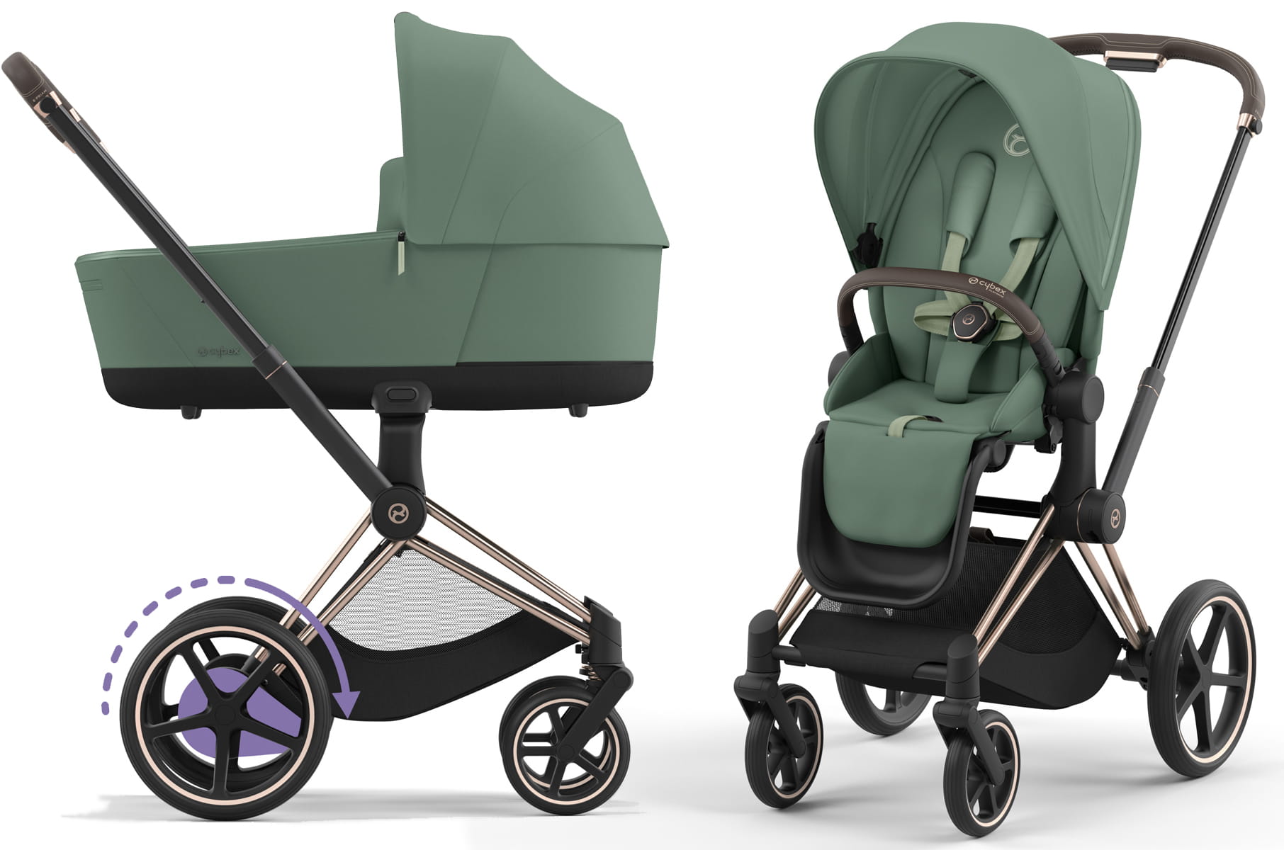 Cybex e-Priam 4.0 - elektryczny wózek wielofunkcyjny, zestaw 2w1 z opcją 3w1 | Leaf Green