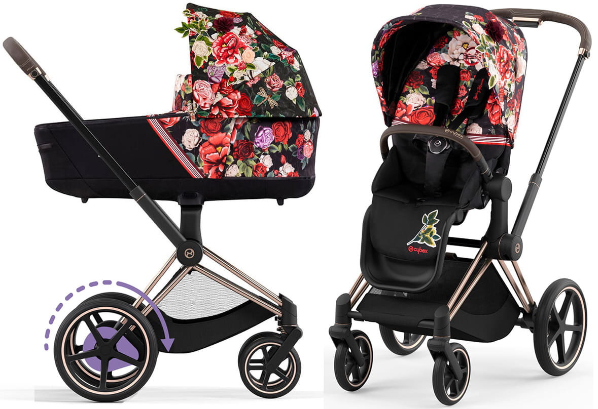 Cybex e-Priam 4.0 - elektryczny wózek wielofunkcyjny, zestaw 2w1 z opcją 3w1 | Spring Blossom Dark