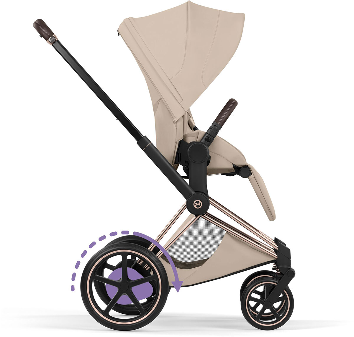 Cybex e-Priam 5.0 to wózek, który odnajdzie się w różnych warunkach - miejska dżungla, leśne ścieżki czy parkowe dróżki nie powinny stanowić dla niego większego problemu. Amortyzacja sprawi, że maluszkowi będzie wygodnie jak u Mamy.