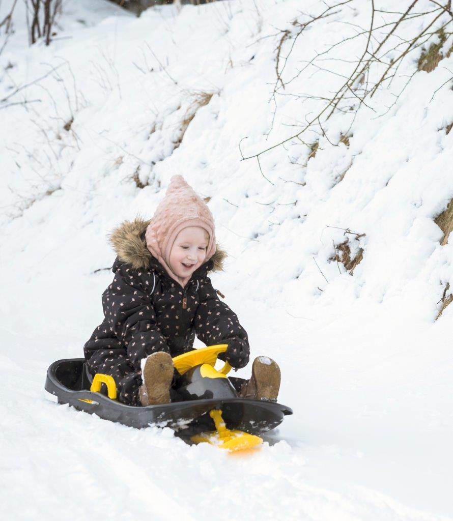 Mimo, że zimą na dworze jest zimno i szybko robi się ciemno, nadal można się bawić na zewnątrz. Zakładamy ciepłe kurtki i rękawice i wychodzimy na śnieg. Poruszanie się po śniegu jest wyzwaniem motorycznym ze względu na opór śniegu - podobny do piasku. Tak więc zabawa w śniegu promuje zdolności fizyczne dziecka. Ponadto śnieg oferuje szereg nowych możliwości zabawy, np. saneczkarstwo, walki na kuli śniegowej, robienie aniołów śnieżnych itp. Kształtowanie i rzucanie kuli śniegowej wzmacnia m.in. koordynację ręka-oko. Tak jak w przypadku innych gier na świeżym powietrzu, jest tu dużo miejsca, które dziecko wykorzystuje do poruszania się i pozostawania w dobrej formie. W tym samym czasie dziecko uczy się o przyrodzie i zmieniających się sezonach/porach roku.