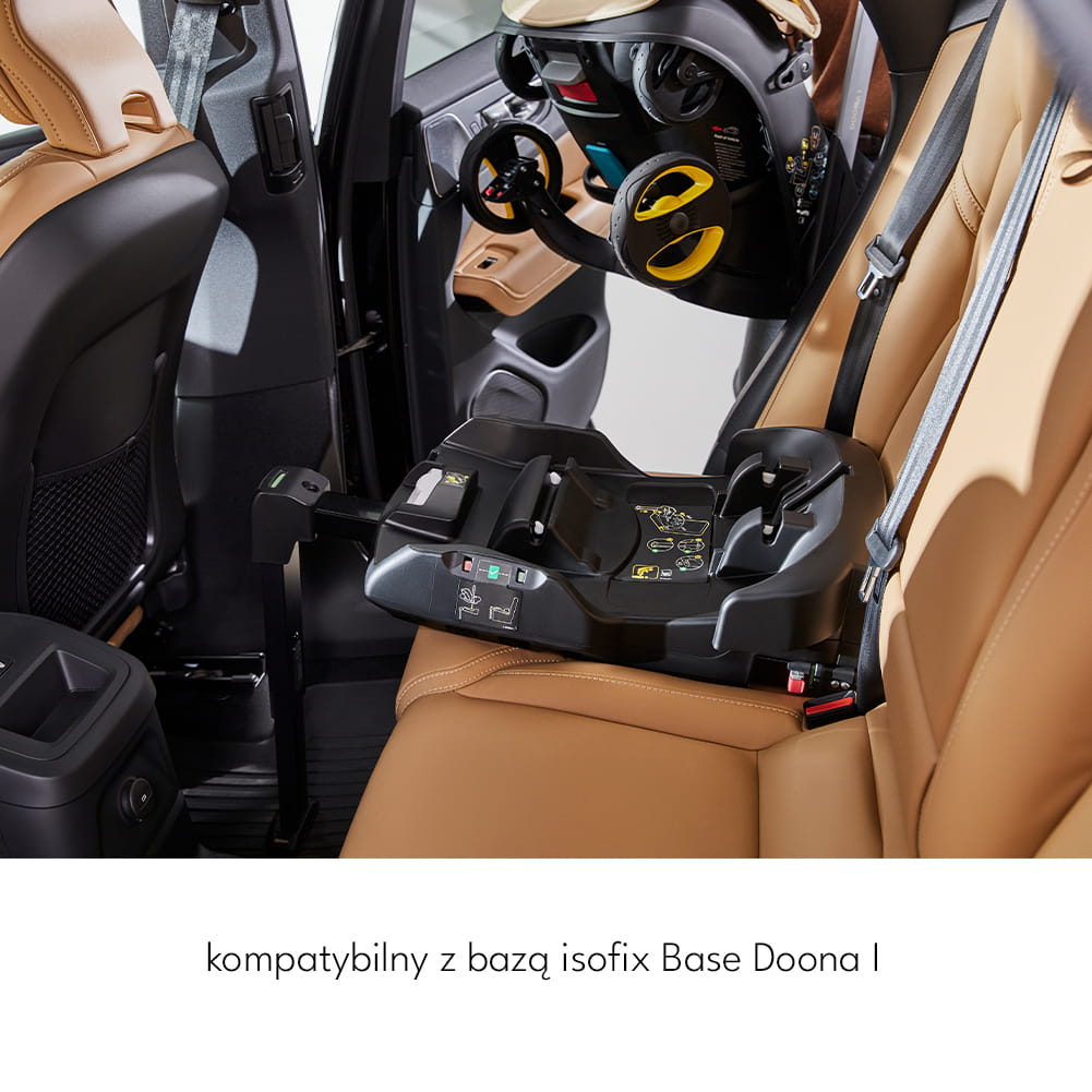 Doona I jest wyposażona w system ochrony przed uderzeniami bocznymi Doona SIP, który skutecznie pochłania energię podczas zderzenia, zapewniając dziecku dodatkową ochronę. Dzięki magnetycznemu połączeniu, montaż jest szybki, łatwy i wygodny, co sprawia, że korzystanie z fotelika jest jeszcze bardziej intuicyjne.