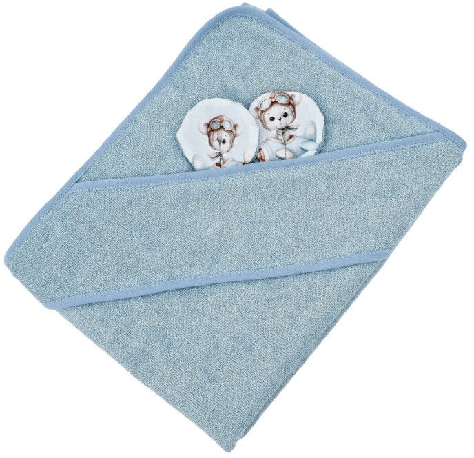 EKO - ręcznik, okrycie kąpielowe 100x100 cm | Miś Pilot Niebieski