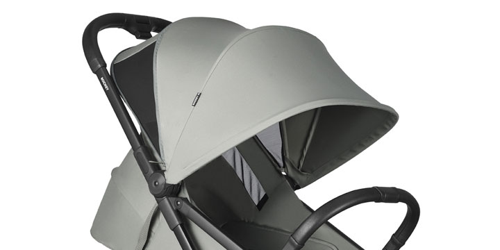 Duża budka wózka Easywalker Rockey M nie tylko skutecznie osłania przed słońcem, ale także chroni przed niewidzialnym promieniowaniem UV. Dzięki regulowanemu oparciu i podnóżkowi spacerówka w mgnieniu oka zamienia się w wygodne, mobilne łóżeczko – idealne miejsce na drzemkę dla małego podróżnika.