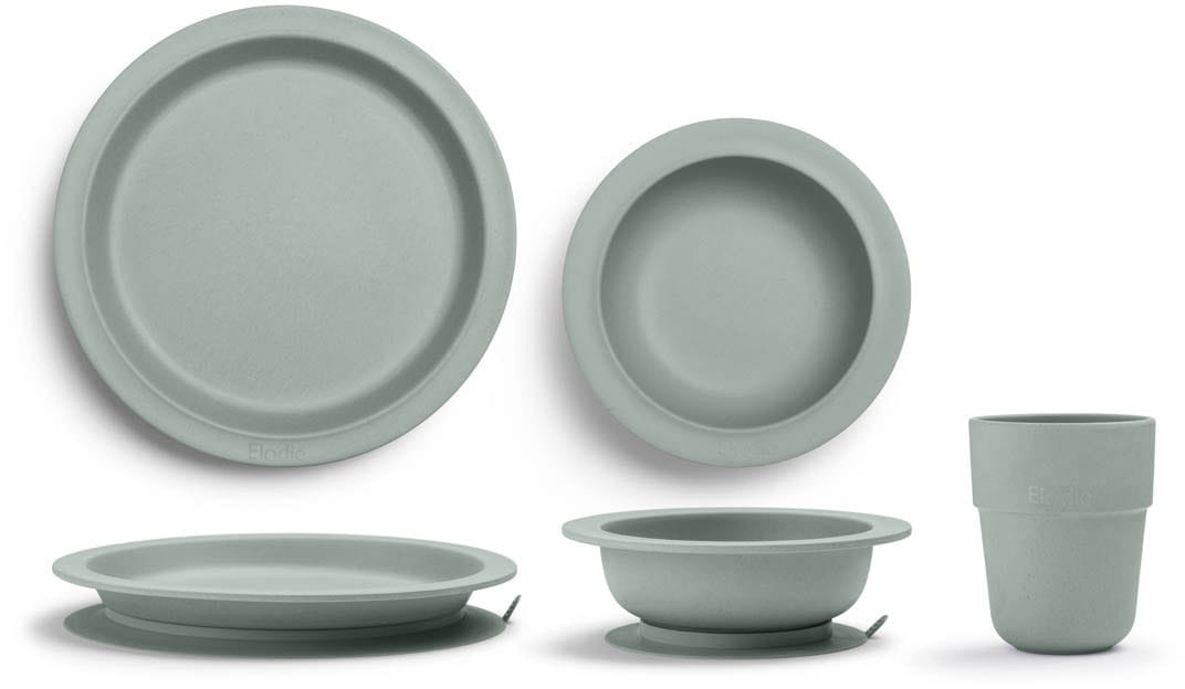 Komplet został wykonany z ekologicznych materiałów, nadaje się do mycia w zmywarce. Talerzyk i miseczka posiadają antypoślizgową podkładkę, którą można wyjąć. Produkt wolny od BPA, PVC i ftalanów.
