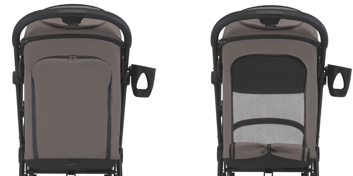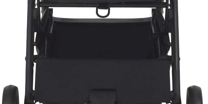 Kosz pod siedziskiem jest foremny i wygodny w dostępie. Pomieści wiele dodatkowych przedmiotów, do których rodzic łatwo sięgnie, w dowolnej chwili.