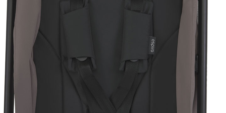 Pałąk to zabezpieczenie przed wysunięciem się z wózka, ale sam może nie być wystarczającą ochroną. Po usadzeniu dziecku w wózku zawsze zapinamy pasy - 5-punktowe szelki z miękkimi ochraniaczami zadbają o to, aby mocny uścisk bezpieczeństwa szedł w parze z delikatnym dotykiem komfortu.