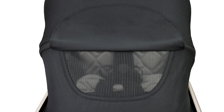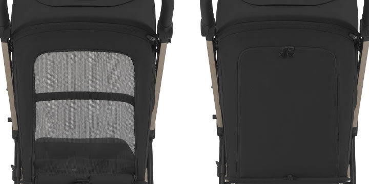 Otwierany panel w oparciu siedziska spacerówki Espiro Pearl kryje pod sobą duże okno z siateczki. To sprawia, że maluch ma zwiększony dostęp do świeżego powietrza, co jest zbawienne dla jego komfortu termicznego, zwłaszcza w upalne dni.
