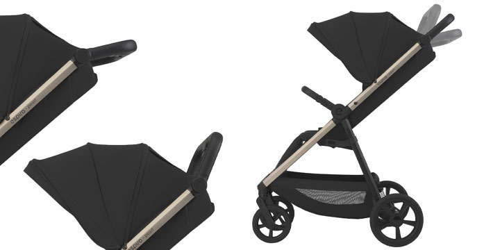 Siedzisko Espiro Pearl posiada regulowane oparcie oraz podnóżek - jeśli podczas spaceru maluszka złapie zmęczenie, w kilka sekund przekształcisz wózek w wygodne łóżko na czterech kółkach.