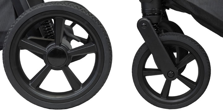 Bezobsługowe koła wózka to symbol wygody - znak, że możesz spacerować do wolil, bez obaw o poziom powietrza lub inne ewentualne przeszkody.