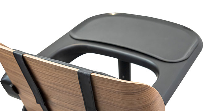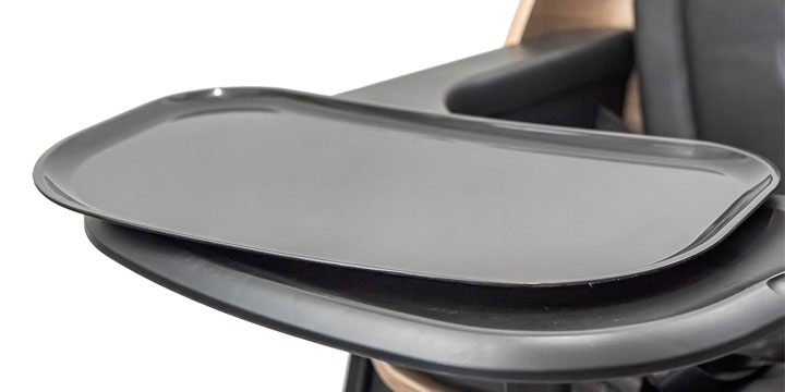 Podwójna tacka w krzesełku Espiro pozwala na łatwy, szybki i wygodny demontaż dla sprawniejszego czyszczenia.