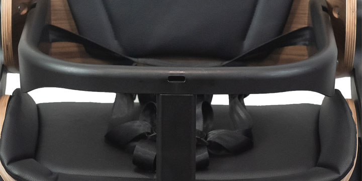 Siedzisko wyposażono w pasy bezpieczeństwa z klamrą spinającą oraz dodatkową barierką, która ochroni malucha nawet po odpięciu tacki.