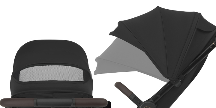 Obszerna budka po powiększeniu do rozmiaru XL skutecznie osłania przed słońcem i wiatrem. Materiał z UPF50+ oraz wodoodporna struktura sprawdzą się zarówno latem, jak i zimą. Praktyczne okienko w budce ułatwia kontakt z maluszkiem bez wybudzania go. Dzięki przemyślanej konstrukcji budka trzyma kształt i nie zapada się podczas jazdy. Wózek spacerowy do miasta Espiro Wave PRO to model całoroczny.