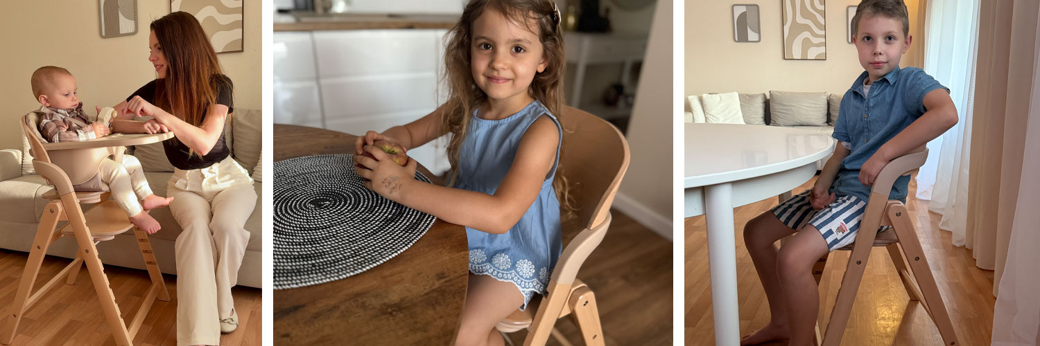 Me&You to innowacyjne, wielofunkcyjne krzesełko zaprojektowane tak, by rosnąć razem z dzieckiem - od 6. miesiąca życia aż po dorosłość. Łączy nowoczesny design, solidne wykonanie i troskę o prawidłowy rozwój malucha. Miękkie, łatwe w czyszczeniu siedzisko z pasami bezpieczeństwa oraz tacka z silikonową nakładką zapewniają komfort i wygodę podczas codziennego użytkowania. Krzesełko doskonale sprawdzi się nie tylko przy posiłkach, ale także podczas zabawy czy nauki, a jego minimalistyczna forma świetnie komponuje się z każdym wnętrzem.
