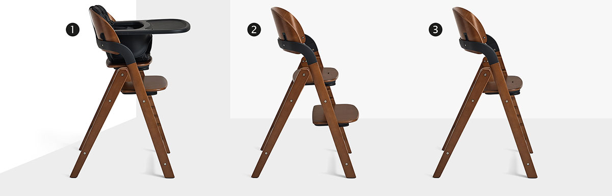 Krzesełko można w kilka chwil złożyć, a po złożeniu stoi stabilnie samo, nie zajmując wiele miejsca. To świetne rozwiązanie dla rodzin ceniących funkcjonalność w małych przestrzeniach.