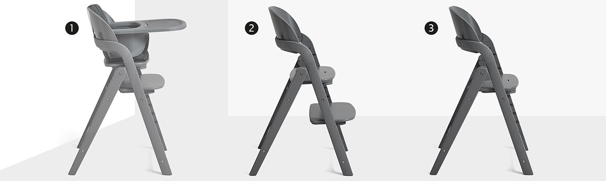 Krzesełko można w kilka chwil złożyć, a po złożeniu stoi stabilnie samo, nie zajmując wiele miejsca. To świetne rozwiązanie dla rodzin ceniących funkcjonalność w małych przestrzeniach.