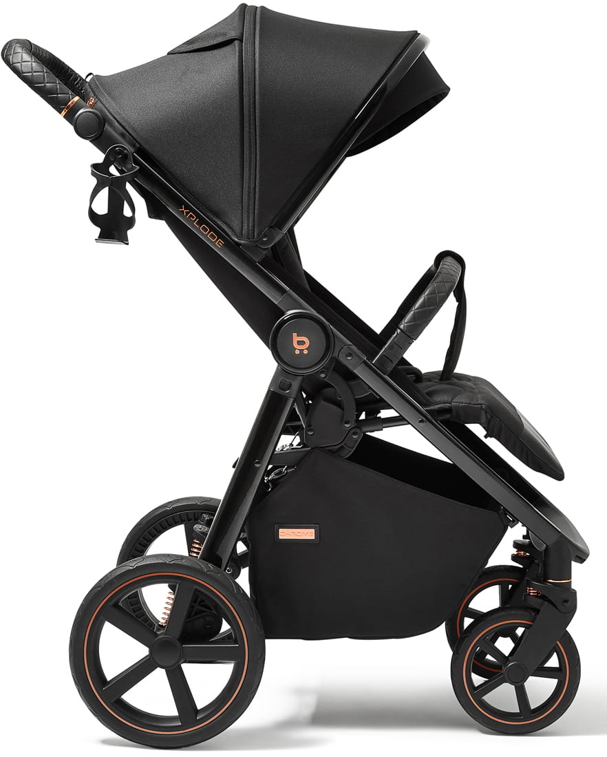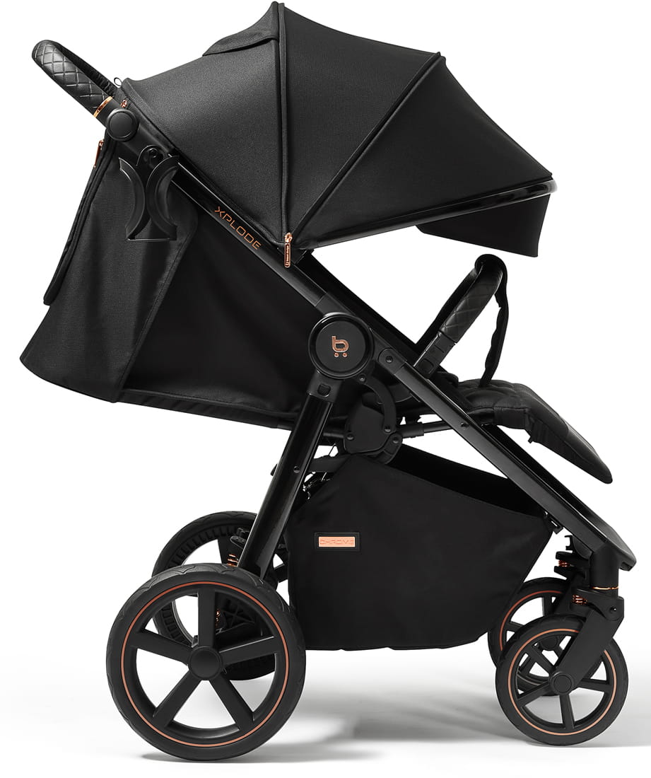 Obszerne, regulowane siedzisko zapewnia maluchowi pełen komfort, niezależnie od tego, czy chce podziwiać świat, czy uciąć sobie drzemkę. Wielofunkcyjna budka z filtrem UV 50 i powłoką hydrofobową skutecznie chroni przed słońcem, wiatrem i deszczem, a wentylowana tylna sekcja dba o świeże powietrze. Dzięki płynnie działającym, pneumatycznym kołom z regulacją twardości zawieszenia Xplode Chrome poradzi sobie zarówno na miejskich chodnikach, jak i na leśnych ścieżkach.