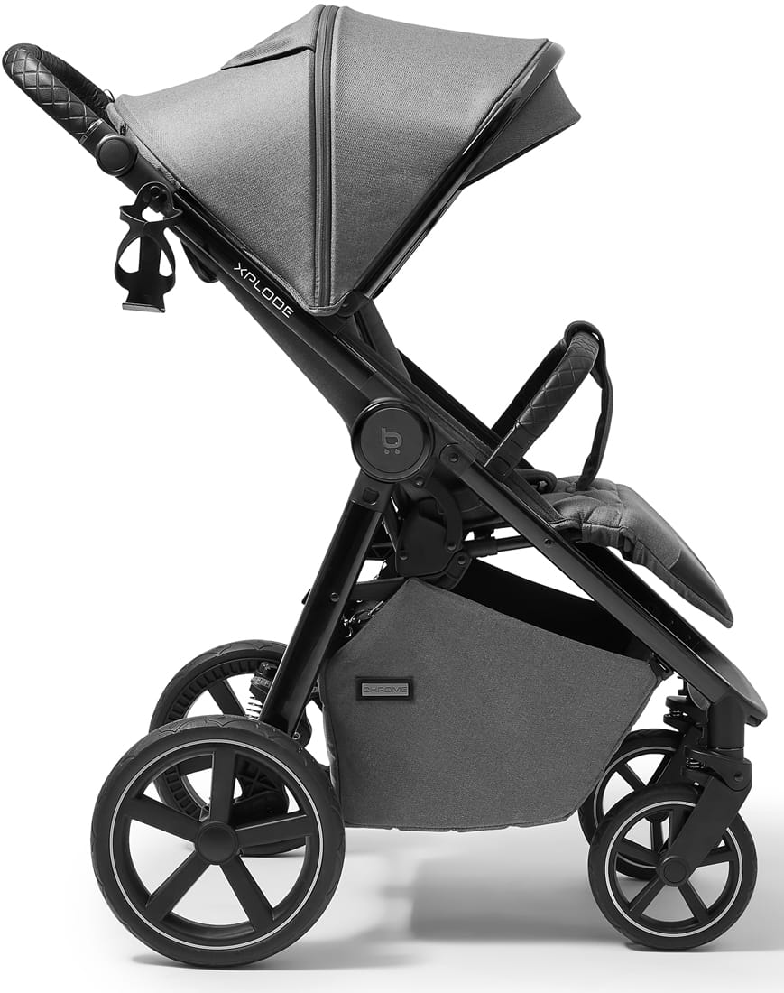 Xplode Chrome to wózek, który dzięki w pełni łożyskowanym, bezobsługowym pneumatycznym kołom, gładko pokonuje każdą nawierzchnię – od miejskich chodników po bardziej wymagające tereny, zapewniając dziecku maksymalny komfort podczas każdego spaceru