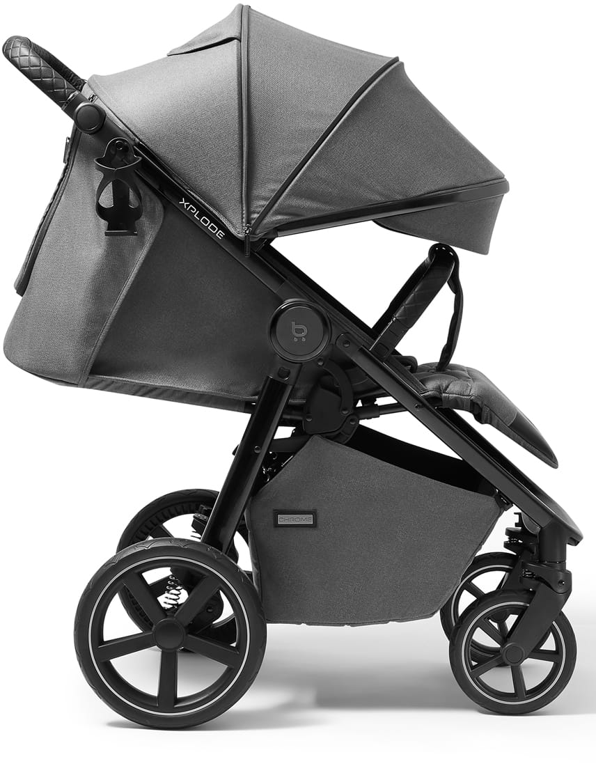 Obszerne, regulowane siedzisko zapewnia maluchowi pełen komfort, niezależnie od tego, czy chce podziwiać świat, czy uciąć sobie drzemkę. Wielofunkcyjna budka z filtrem UV 50 i powłoką hydrofobową skutecznie chroni przed słońcem, wiatrem i deszczem, a wentylowana tylna sekcja dba o świeże powietrze. Dzięki płynnie działającym, pneumatycznym kołom z regulacją twardości zawieszenia Xplode Chrome poradzi sobie zarówno na miejskich chodnikach, jak i na leśnych ścieżkach.