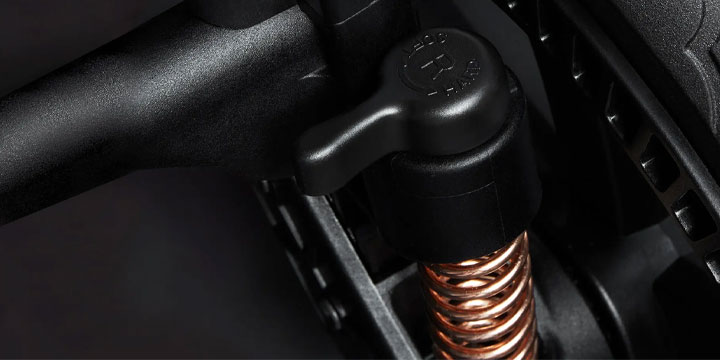 Dzięki systemowi regulacji amortyzacji możesz dopasować twardość zawieszenia do nawierzchni - miękko na spacer w lesie, twardziej na gładkim asfalcie.