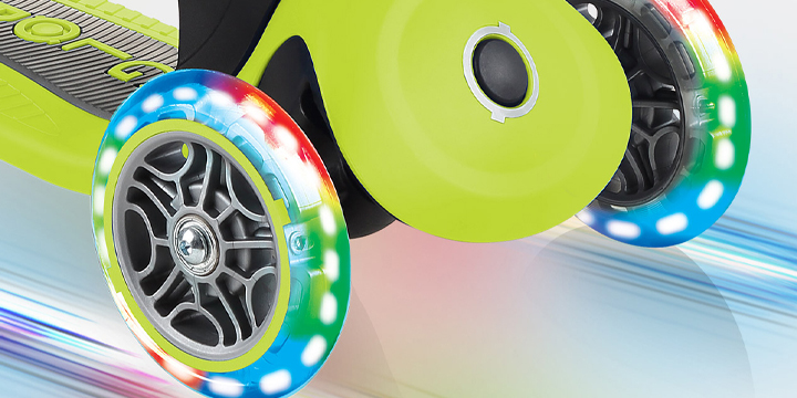 Trójkołowa hulajnoga została wzbogacona o światełka LED, które nie wymagają baterii - migają podczas jazdy, będąc dla maluszka źródłem radości oraz dbając o jego widoczność na mieście. Budowa jeździka Globber GO-UP została stworzona w taki sposób, aby jak najbardziej zredukować jakiekolwiek wywrotki - produkt jest bardzo stabilny, dzięki czemu trudno o przewrócenie się.