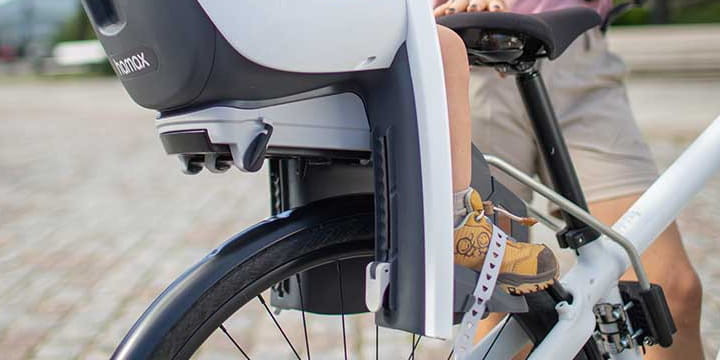 Montowanie fotelika na ramie jest szybkie i proste. Po dokupieniu adapterów możliwy jest również montaż na bagażniku.